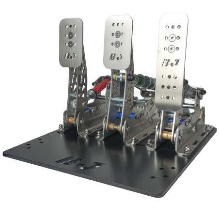 Fabricada en acero inoxidable satinado de 3mm de espesor para proporcionar una robustez sin comparación, cuenta con vástagos de 8mm de diámetro para empujar los resortes del acelerador, del embrague y los elastómeros del freno.